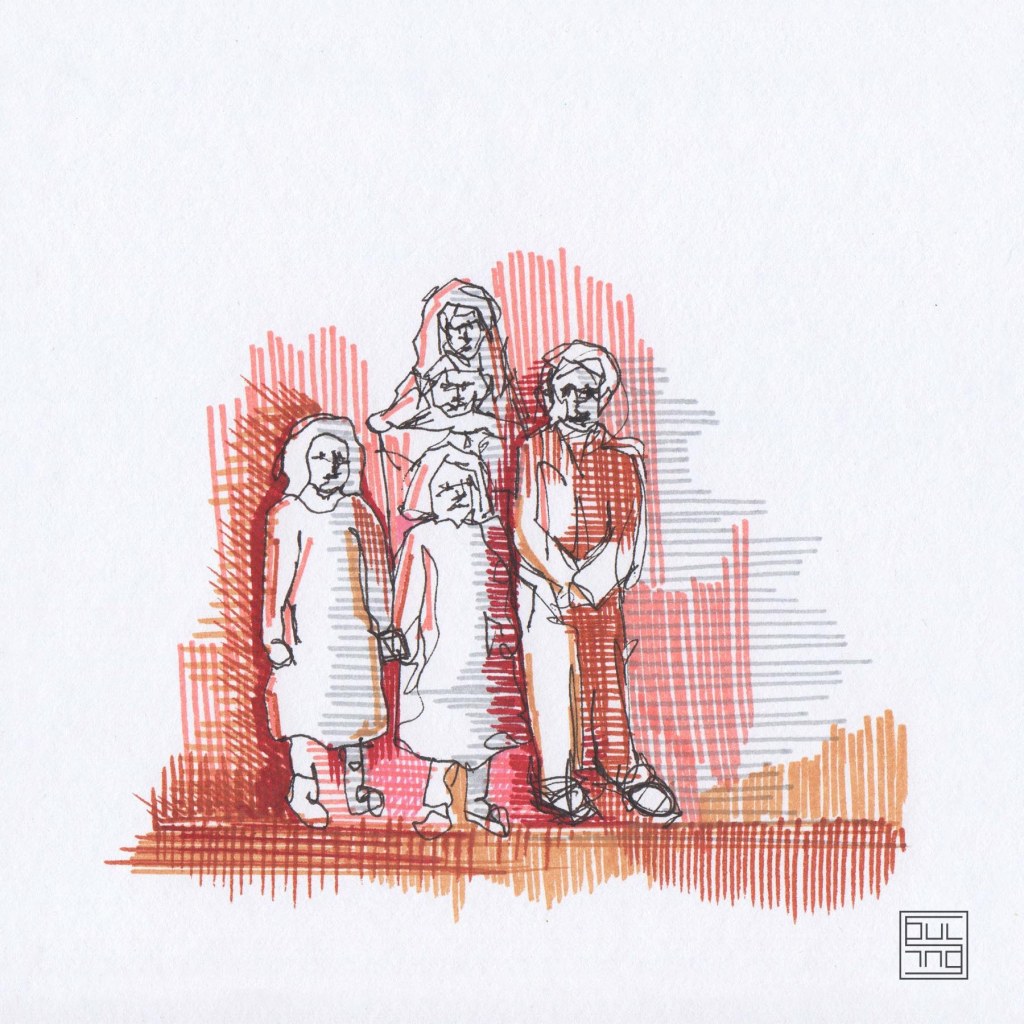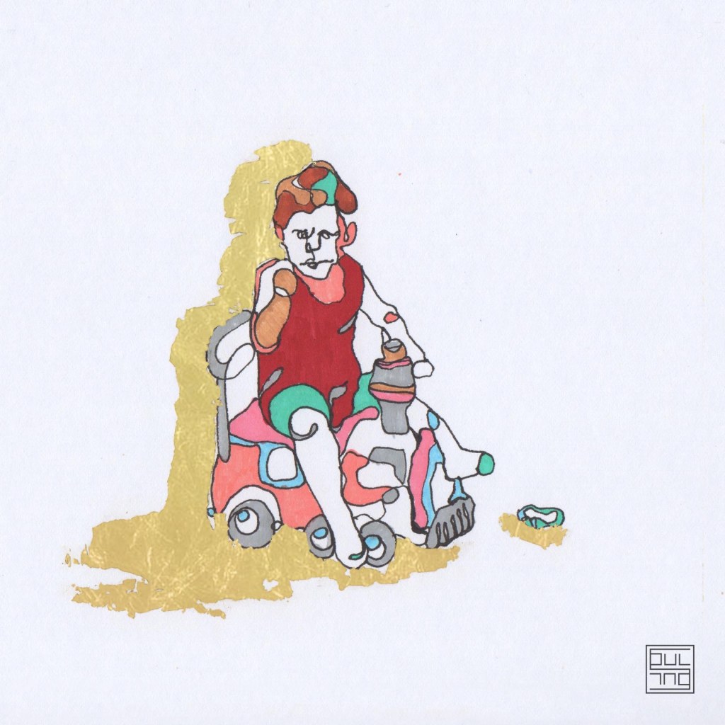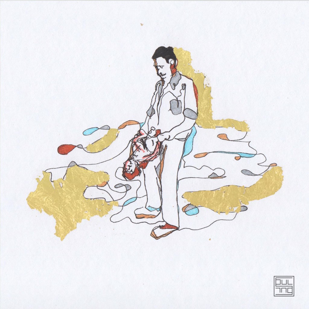 My works mainly depict child figures. It is about mixed technique, where ink and gold leaves are combined. The figures interact, perplex, and create moments. At a glimpse, the sensation of temporary recall of a memory or sentiment is created. The artworks create the feeling of nostalgia for childhood, either in a carefree way or not. However, this feeling is always created by a sequence of thoughts regardless of age.