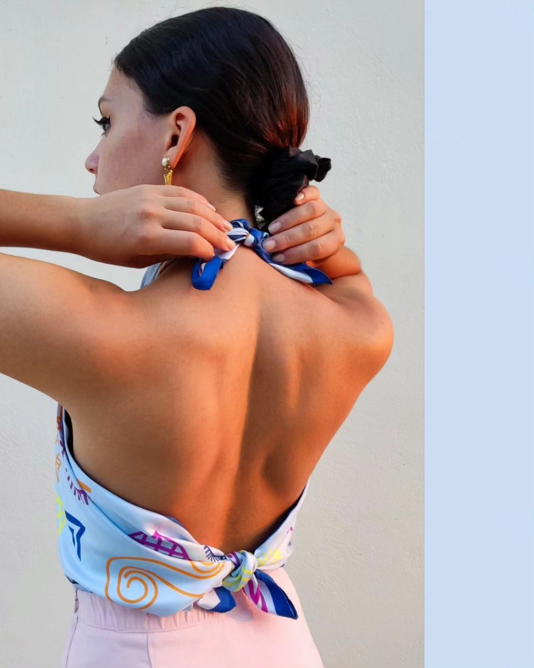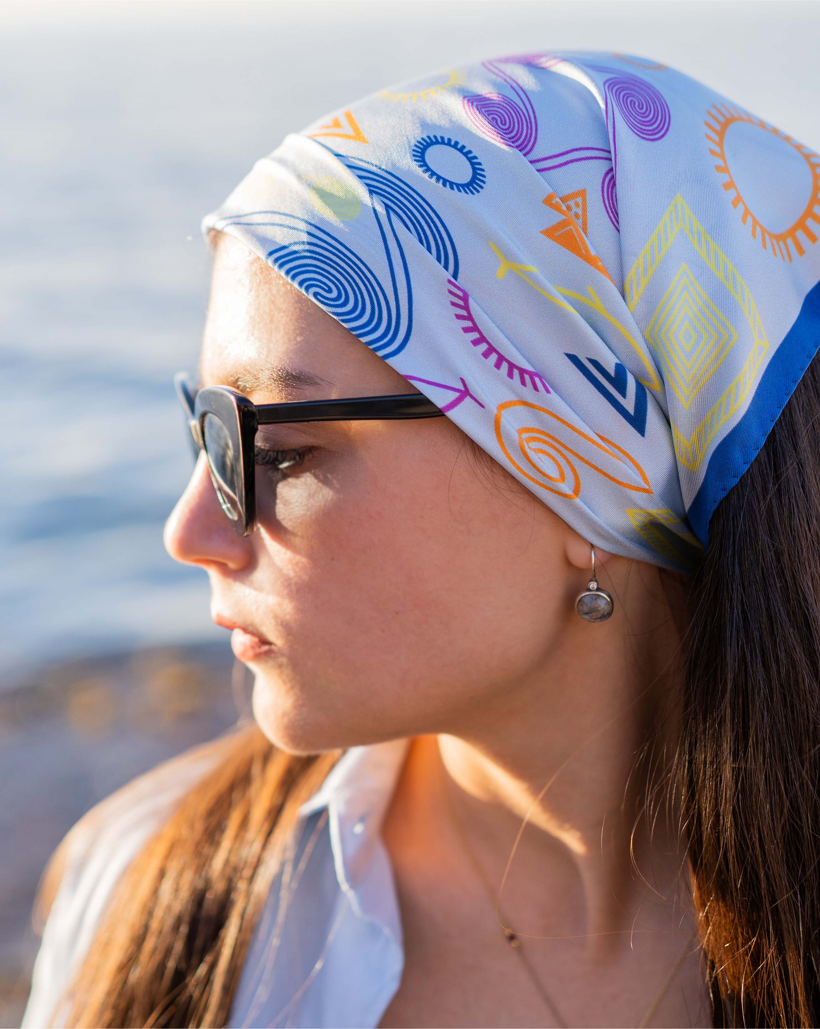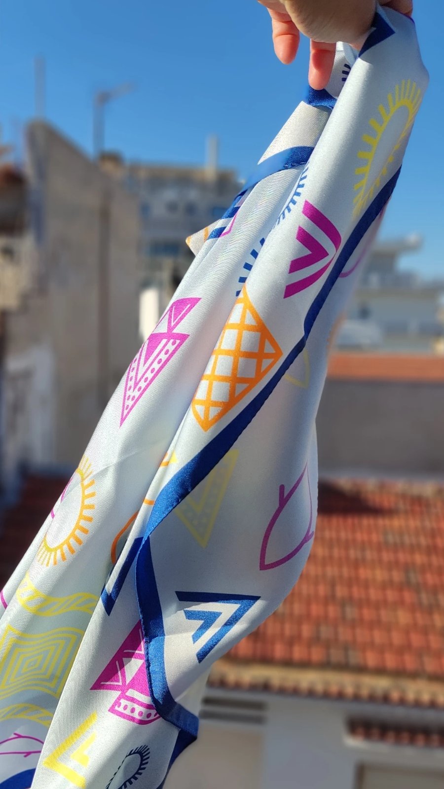 The silk scarves draw inspiration from Cycladic art motifs. Expertly crafted in Greece from 100% pure silk with a delicate twill weave for softness and durability. Each piece reflects our commitment to quality and craftsmanship.